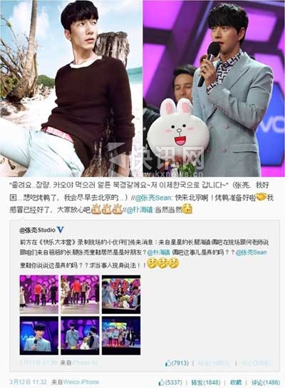 听到该消息后,张亮也在自己 上写“快来北京!烤鸭准备好啦”。此外,张亮13日在采访中也表示,朴海镇是自己最喜欢的韩国男演员,同时也是非常要好的朋友,如果可以与朴海镇一起参加节目,自己会考虑去韩国发展。(实习编译:高苑可 审稿:李小飞)