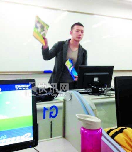 和那些前来蹭课的学生不同,听了甘麟翰近一年课的对外汉语专业11级学生小徐,并没觉得甘老师有什么特别,“最开始看到的时候确实觉得很帅,现在已经看习惯了。他主要是跟我们合得来。”