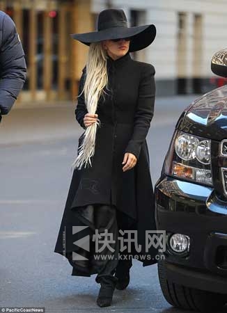 Gaga头上戴的一束金色假发给自己的黑色装束增添了一种淡淡的风情,黑色宽檐帽将自己那张辨识度极高的脸遮住,并用黑色太阳镜遮住剩下的半张脸。这身着装让Gaga着实像一名巫婆,如果再配上一柄扫帚,那么她的巫婆装就完美了。(实习编译:周雨薇 审稿:张雪)