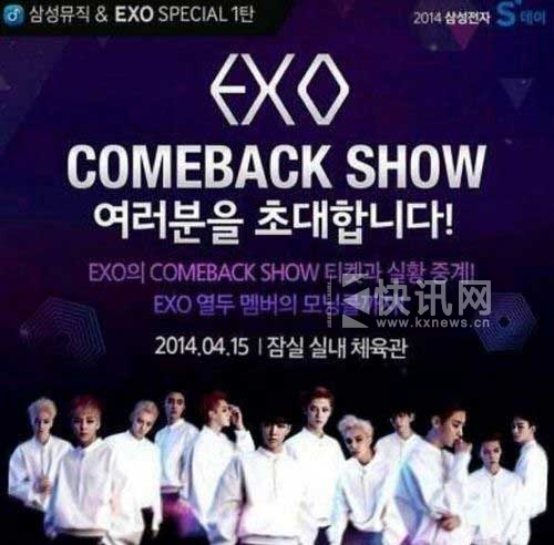 EXO将在首尔蚕室体育场举办“EXO Comeback Show”,正式展开新迷你专辑系列宣传活动。值得一提的是此次EXO还将携手三星电子共同展开宣传活动。