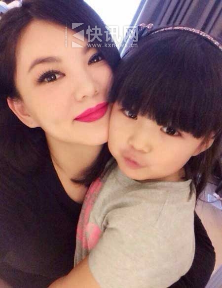 4月1日下午, 李湘 在 晒出紧搂女儿王诗龄的照片。照片中,李湘涂上大红唇,睫毛卷翘。在她怀里的Angela王诗龄则撅起小嘴卖萌,十分乖巧。
