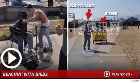 【环球网综合报道】据 美国 娱乐八卦网站TMZ 5月6日报道,歌坛小天王贾斯汀•比伯与辣妹Yovanna Ventura于5日当天被目击一同出现在威尼斯海滩,享受悠闲的一天,但他的保镖却手忙脚乱。