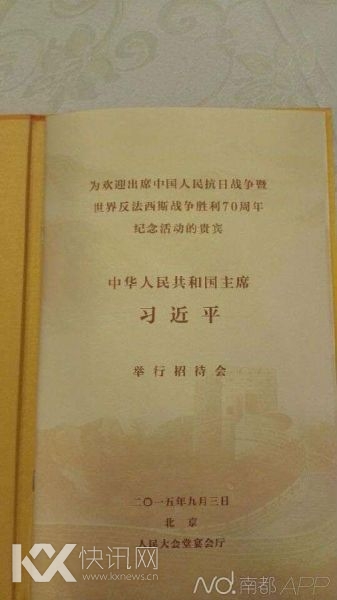 南都讯 记者吴斌 发自北京 在上午的抗战胜利70周年纪念日大会阅兵式结束之后,紧接着在人民大会堂宴会厅,国家主席习近平将举行招待会,菜单也已经曝光。