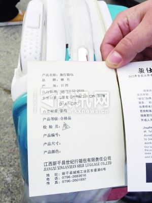 不过,另一位消费者王先生的维权就遭遇困难。他向北京晨报记者展示,自己从永辉超市买到了问题行李箱,“单从外观看,根本看不出毛病,但他的标牌却没有标注成分”。北京晨报记者注意到,在这款骏仕箱包的标牌上,主要材质一栏后显示多个成分,每个成分前都有一个小框,但没有一个小框是被勾选的,“正常情况下,你的箱包含哪些成分,都应该明确告知消费者”。