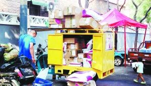 日前,北京商报记者在微特派四道口站点走访时发现,服装特卖唯品会的包裹与主营生鲜的本来生活网包裹在一个车厢内进行混送,车厢内部也未有任何冷藏设备。由于包裹较多,部分纸箱甚至被搁置于三轮车顶部,用绳子固定。