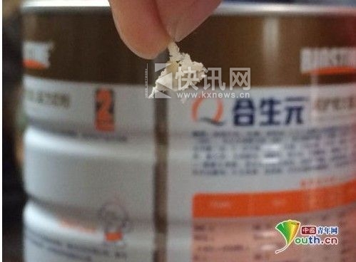 合生元奶粉中吃出的白虫。 中国青年网记者 杨双双摄
