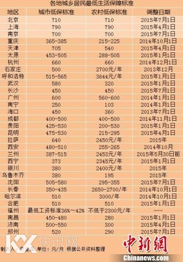 今年以来,上海、北京、南京等多地相继调整城乡居民最低生活保障标准,并实现了城乡低保标准的“并轨”。中新网记者梳理发现,在四大直辖市和27个省会城市中,上海市城乡低保标准最高,为790元/月,北京次之,为710元/月。 详情>>