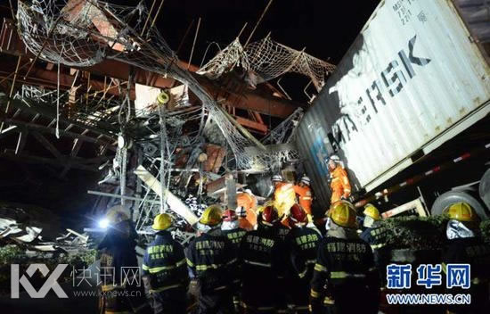 新华网记者1日晚间9时30分许连线现场施救人员。据介绍,事发地在厦蓉高速龙岩往古田方向、过龙岩西高速出口约五六百米处。高速公路上方,一段在建高架桥发生坍塌,桥体和铁架倒向高速路面,至少有两部车辆被压埋。