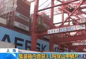 上海警方在集装箱发现整整3.1吨穿山甲鳞片!