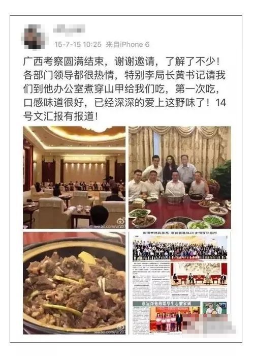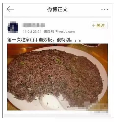 从他们吃野味发出来的微博就可以看到,这是满满的炫耀,仿佛吃到野味就是一种尊贵的象征。