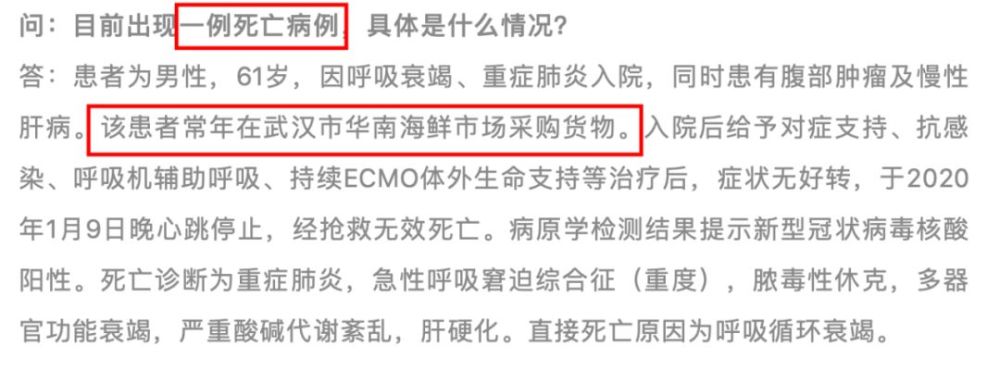 第一例「新型冠状病毒肺炎」死亡病例,常年在武汉华南海鲜市场购物。