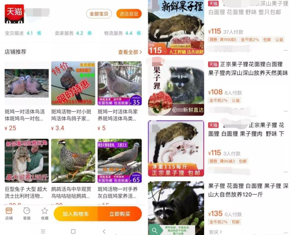 甚至在某宝上都有各种野味店,或更是肆无忌惮,连国家级保护动物也不放过。